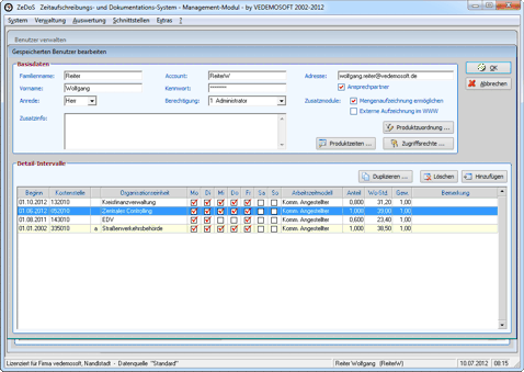 Benutzer einsehen (wochen-, monats- und jahresweise,